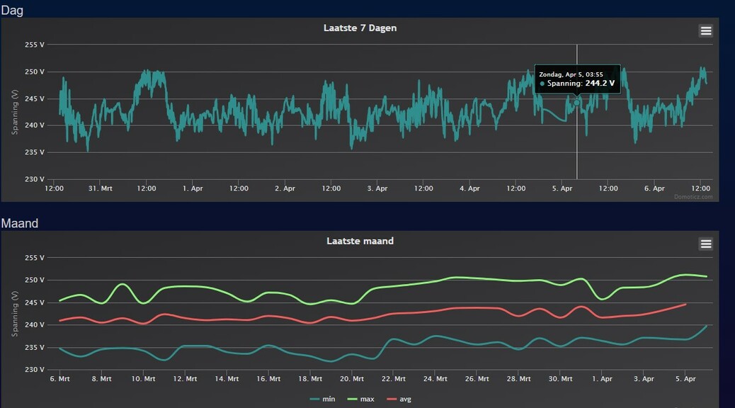 Vorige week nog contact met Liander gehad, onze net beheerder. Zij verwezen me door naar een algemene pagina van netbeheerders, en daar wordt aangegeven dat de spanning tussen de 207 en 253 Volt moet liggen, Wij zitten daartussen, dus is er geen probleem.